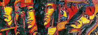 These artworks function as symbolic architectures — layered environments shaped through intuition and refinement. Recurring archetypal figures inhabit spaces that are neither fixed in time nor geography, reflecting stages of inner evolution.