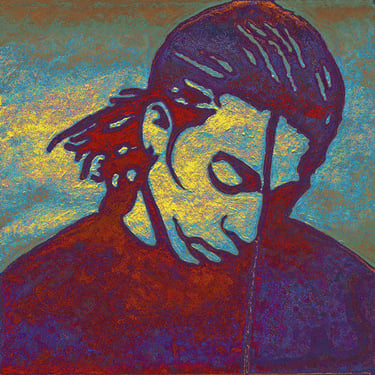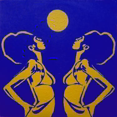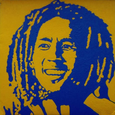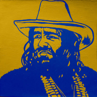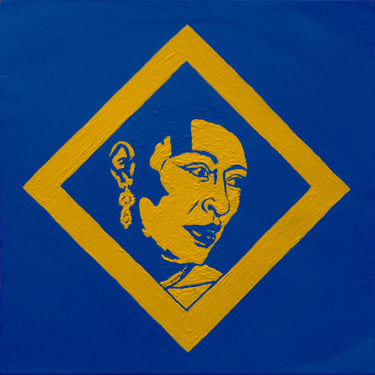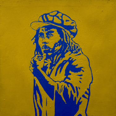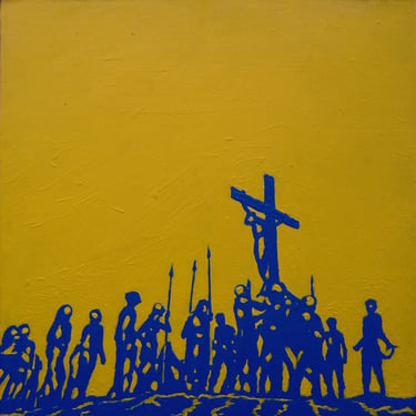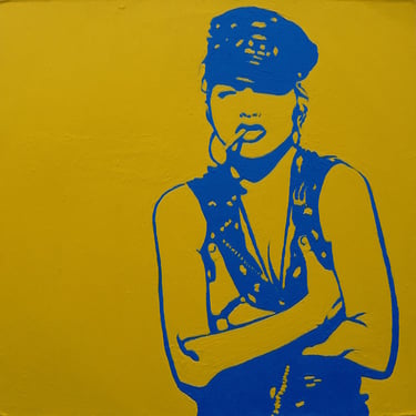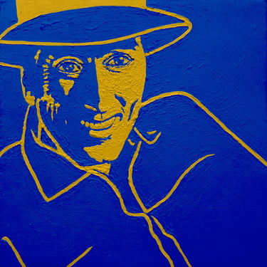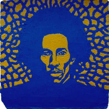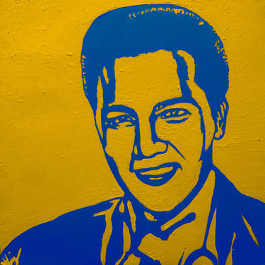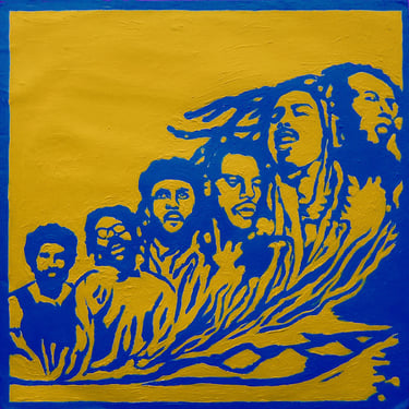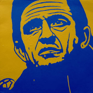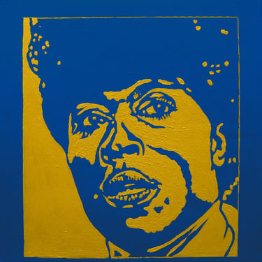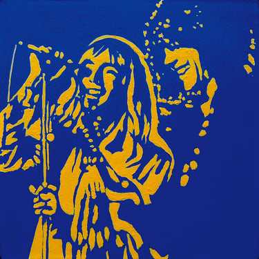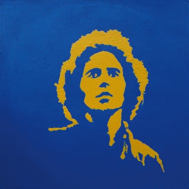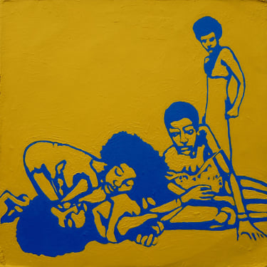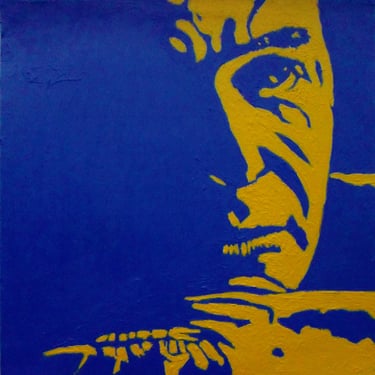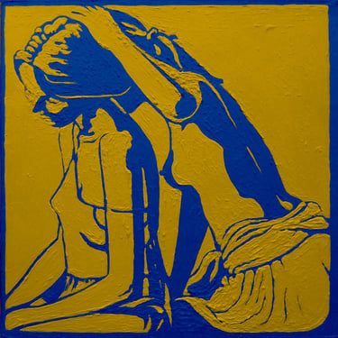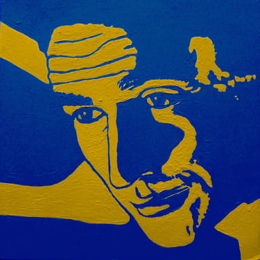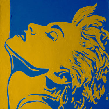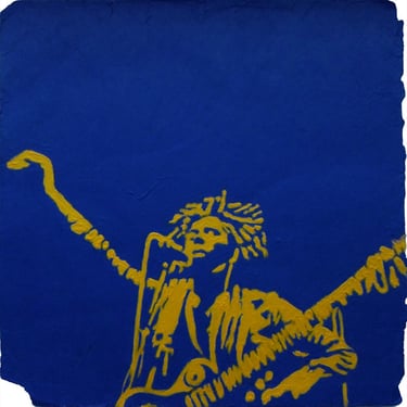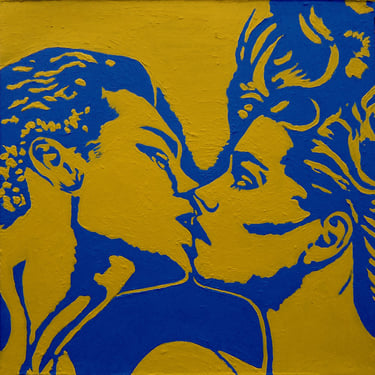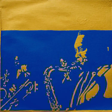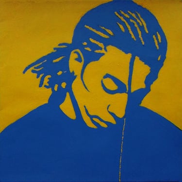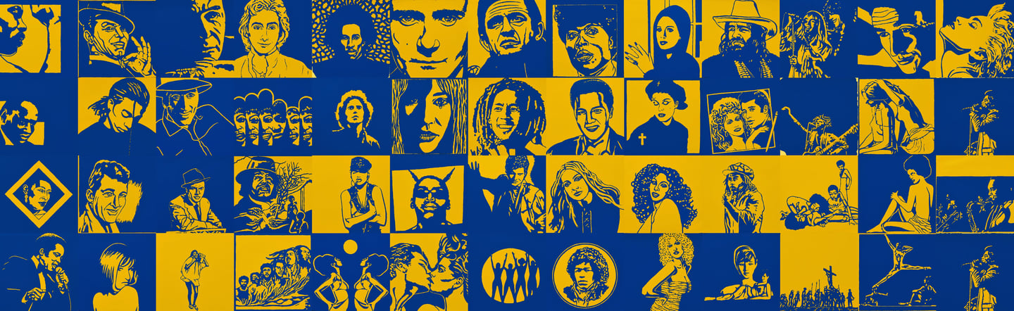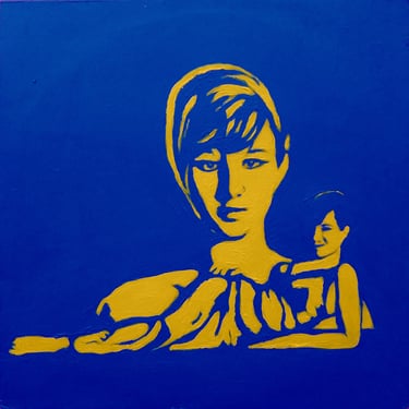 Life Soundtrack is a collection of 52 paintings made on vinyl record covers. The images are painted over the original cover art in two colors: cobalt blue and deep yellow. All text and details have been omitted.